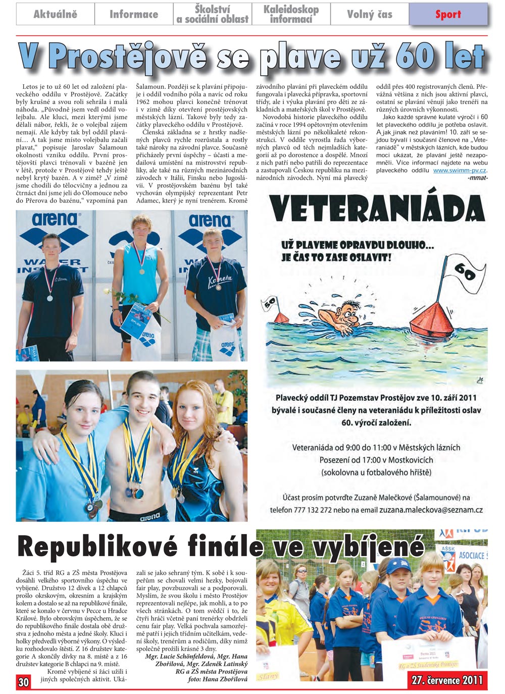 Radniční listy o historii plaveckého oddíluVytvořeno: 20. prosinec 2011Radniční listy věnovaly skoro celou stránku historii plaveckého oddílu v Prostějově. Více v obrázku níže: